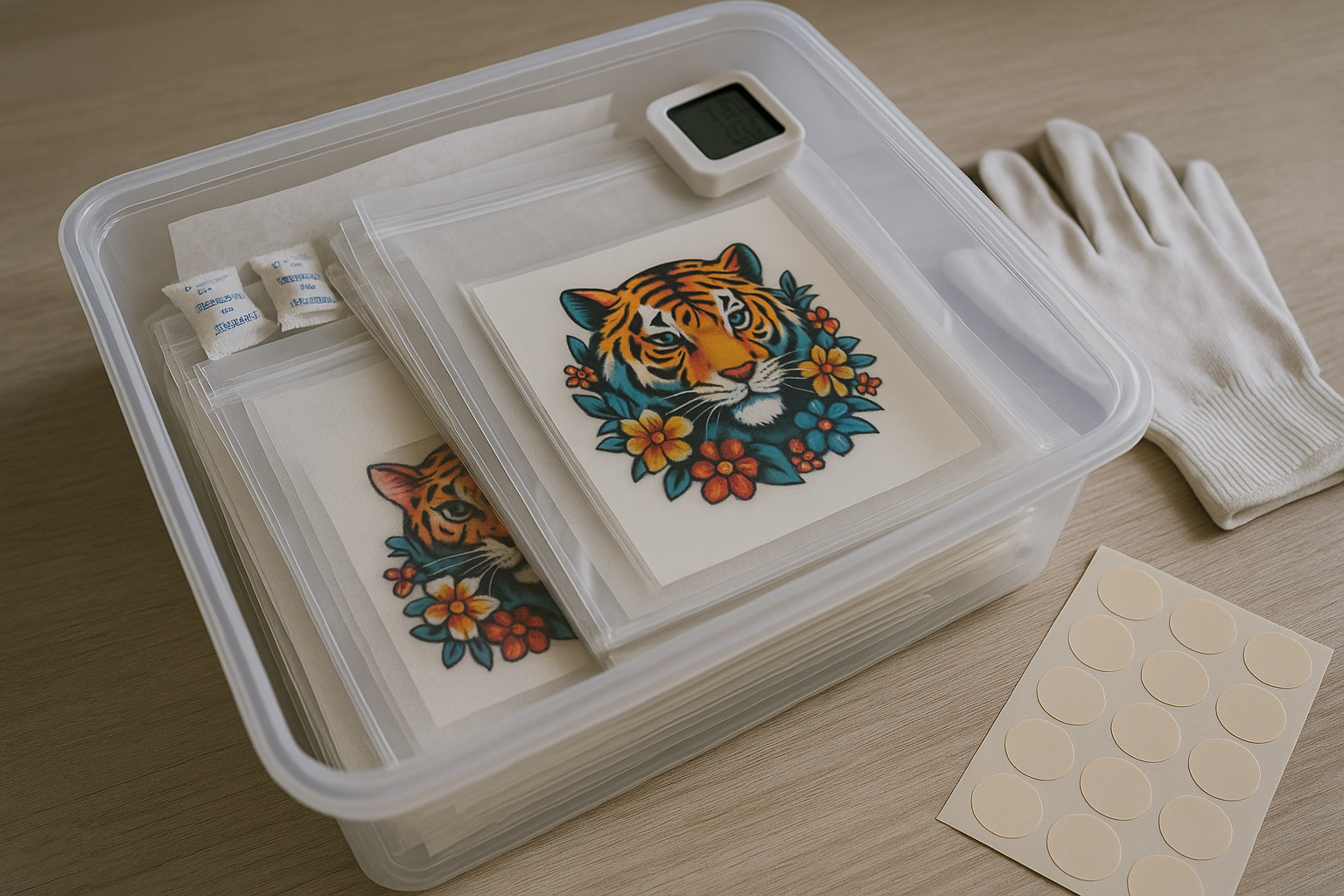 Do you have a stock of DTF transfers and don't want them to lose their adhesion or color? Looking for a clear procedure on how to keep them in perfect condition even after months? In this guide you will find the exact conditions, packaging, common mistakes and tips for saving older transfers. Read on and save the most important steps to make every press turn out great.