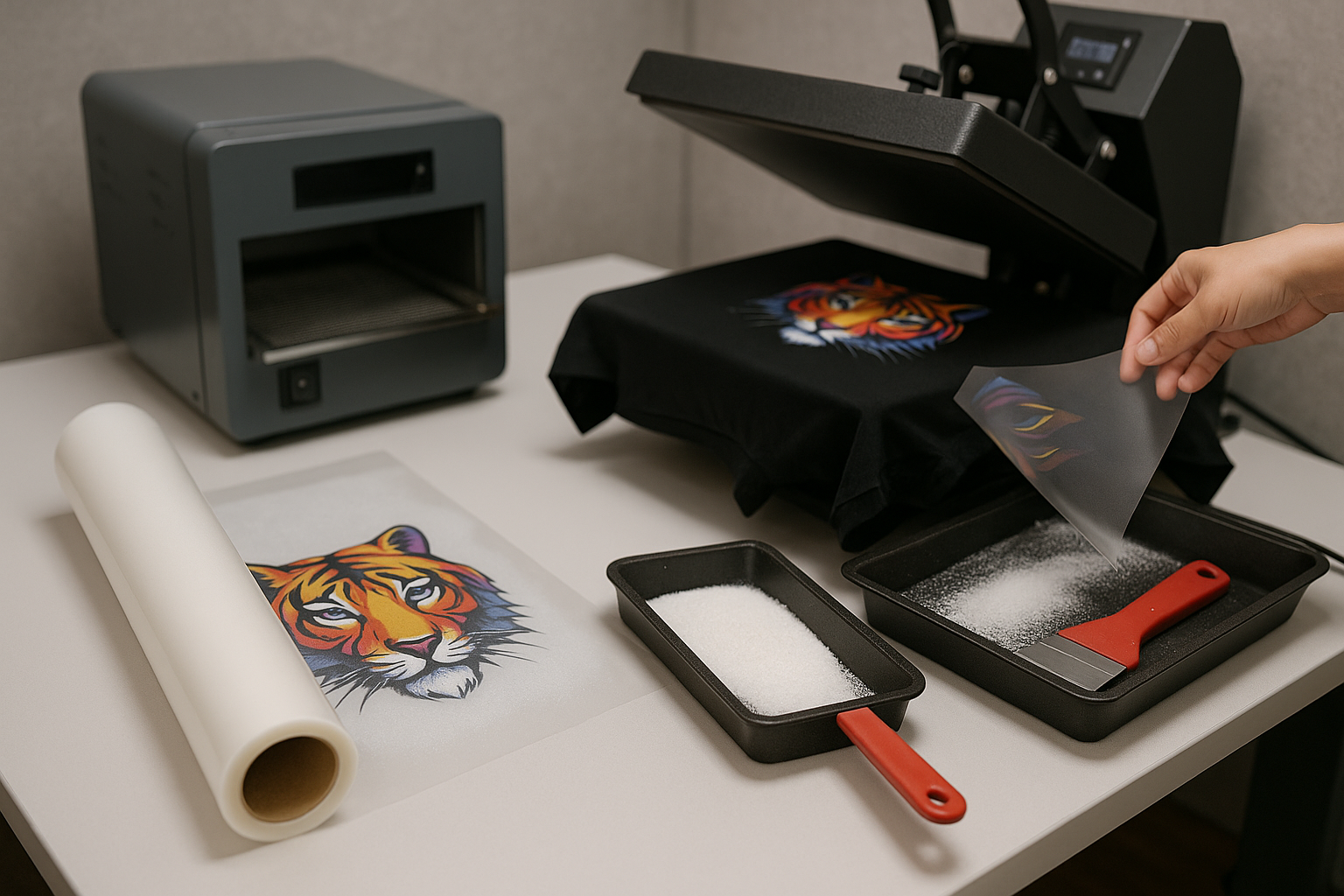 DTF quality is the sum of several steps: the right printer profile and settings, the appropriate film type and weight,even application of powder adhesive, and precise control of oven and press temperature/time.